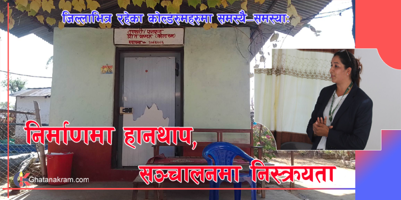 पर्वत । जिल्लाभित्र निर्माण भएका कोडरुमहरु अपेक्षा गरेअनुसार कृषकका लागि उपयोगी हुन सकिरहेका छैनन् । निर्माणक्रममा चुस्त देखिएका स्टोरहरु अनेकन् समस्या झेलेर संचालनका क्रममा समस्याग्रस्तरुपमा चलिरहेका देखिन्छन् । फरक–फरक समयमा व्यक्ति विशेष तथा राज्यको विभिन्न तहबाट लाखौंलाख लगानी भइरहेका कोल्डरुमहरु सोचेअनुसार उपलब्धीमूलक हुन नसकेका हुन् ।